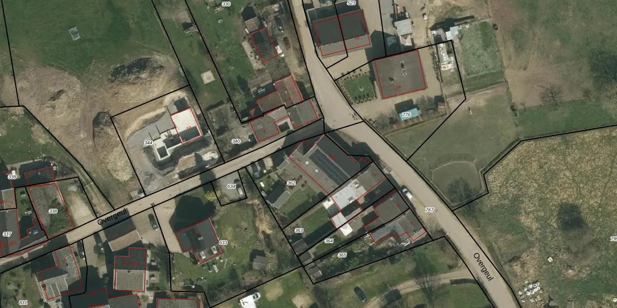 Overgeul 9-1 is gelegen op kadastraal perceel WTM00M362. Deze kadastrale aanduiding is uniek en wordt gebruikt door het Kadaster om eigendomsrechten en andere zakelijke rechten vast te leggen. Het perceel maakt onderdeel uit van de kadastrale gemeente Wittem.