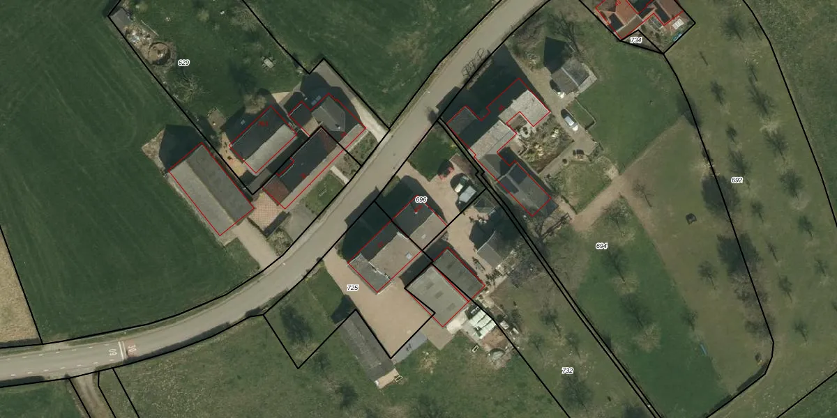 Het adres is gelegen op perceel 696 in de sectie L en de kadastrale gemeente Wittem. De kadastrale aanduiding is aldus WTM00-L-696. Het perceel is kleiner dan gemiddeld in Wittem. Het perceel is 420 m² groot, terwijl het gemiddelde ligt op 6067,55 m². De grootste perceeloppervlakte in de kadastrale gemeente is 50,8 ha. De kleinste oppervlakte bedraagt 0 m². Op het perceel bevinden zich geen andere adressen. De huidige grenzen van het perceel zijn digitaal in de Basisregistratie Kadaster (BRK) geregistreerd op 14-09-2010.