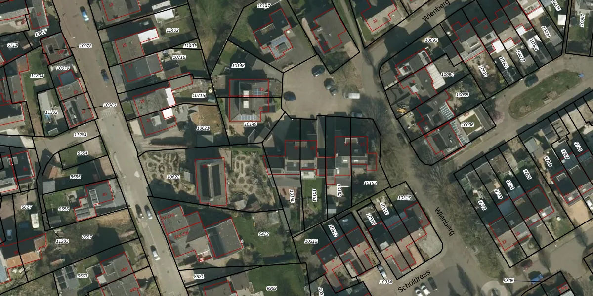 Het perceel waarop Wienberg 21 staat heeft een oppervlakte van 355 m². Dit is een groot perceel. De perceeloppervlakte wordt geregistreerd door het Kadaster. Gedetailleerde informatie over de maten van dit perceel kunt u vinden in het rapport Kadastrale kaart met maatvoering van Wienberg 21.