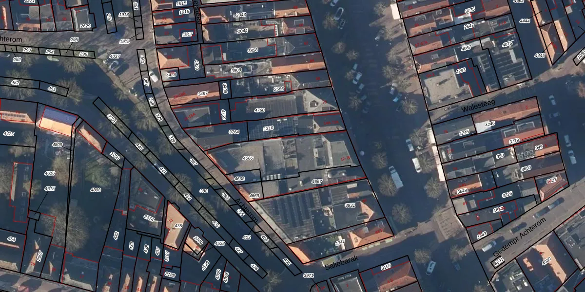 Het perceel waarop Achterom 12-C staat heeft een oppervlakte van 528 m². Dit is een groot perceel. De perceeloppervlakte wordt geregistreerd door het Kadaster. Gedetailleerde informatie over de maten van dit perceel kunt u vinden in het rapport Kadastrale kaart met maatvoering van Achterom 12-C.