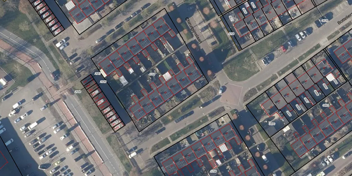Het perceel waarop Bottelierstraat 47 staat heeft een oppervlakte van 2450 m². Dit is een zeer groot perceel. De perceeloppervlakte wordt geregistreerd door het Kadaster. Gedetailleerde informatie over de maten van dit perceel kunt u vinden in het rapport Kadastrale kaart met maatvoering van Bottelierstraat 47.