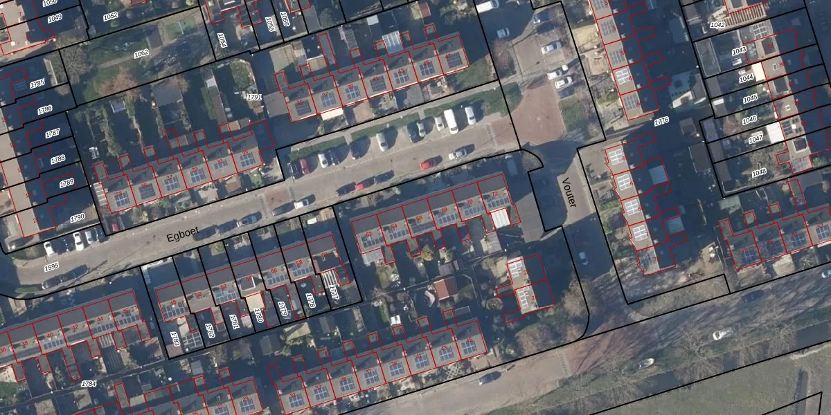 Het perceel waarop Egboet 66 staat heeft een oppervlakte van 9584 m². Dit is een zeer groot perceel. De perceeloppervlakte wordt geregistreerd door het Kadaster. Gedetailleerde informatie over de maten van dit perceel kunt u vinden in het rapport Kadastrale kaart met maatvoering van Egboet 66.