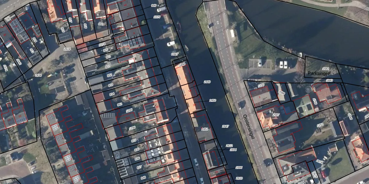 Gebruik de zoekbalk of klik op een perceel voor informatie over de adressen binnen dit perceel.