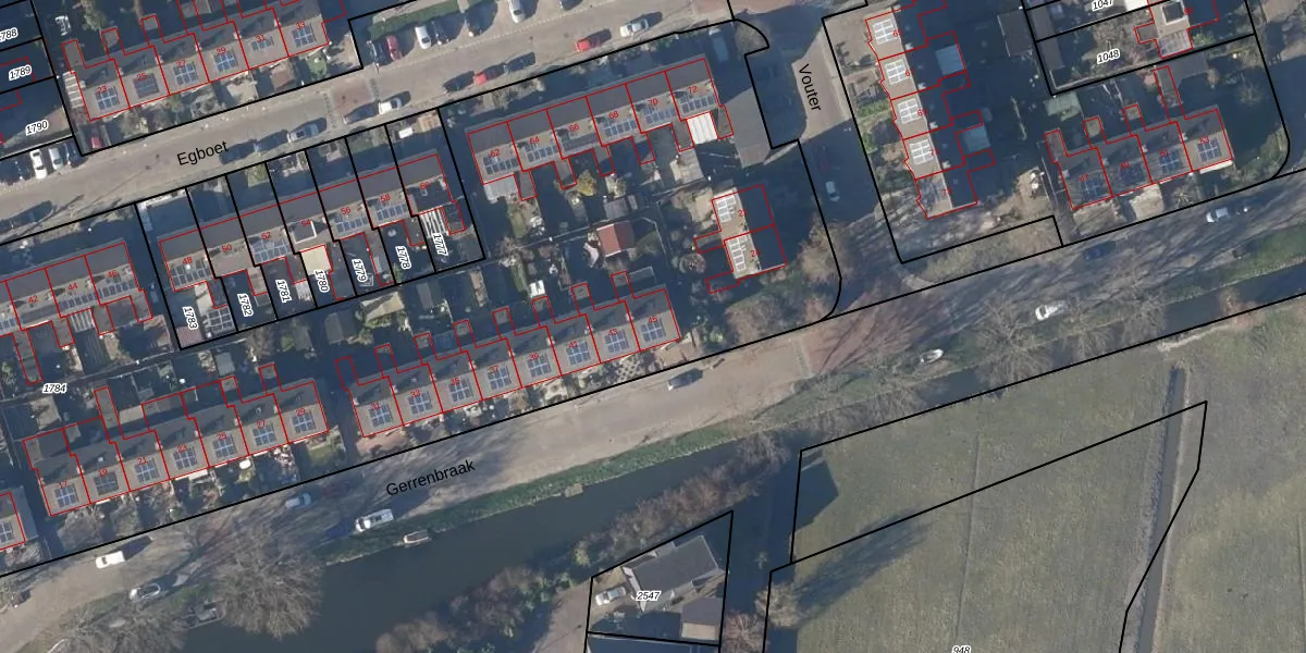 Het perceel waarop Gerrenbraak 45 staat heeft een oppervlakte van 9584 m². Dit is een zeer groot perceel. De perceeloppervlakte wordt geregistreerd door het Kadaster. Gedetailleerde informatie over de maten van dit perceel kunt u vinden in het rapport Kadastrale kaart met maatvoering van Gerrenbraak 45.