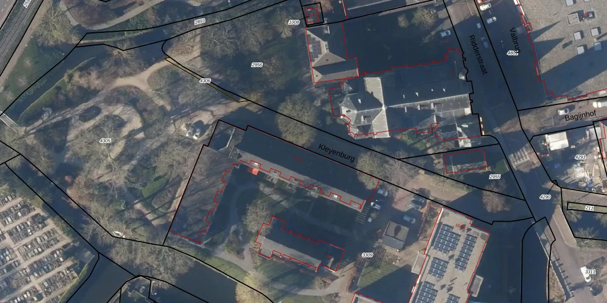 Het perceel waarop Kleyenburg 4 staat heeft een oppervlakte van 7045 m². Dit is een zeer groot perceel. De perceeloppervlakte wordt geregistreerd door het Kadaster. Gedetailleerde informatie over de maten van dit perceel kunt u vinden in het rapport Kadastrale kaart met maatvoering van Kleyenburg 4.