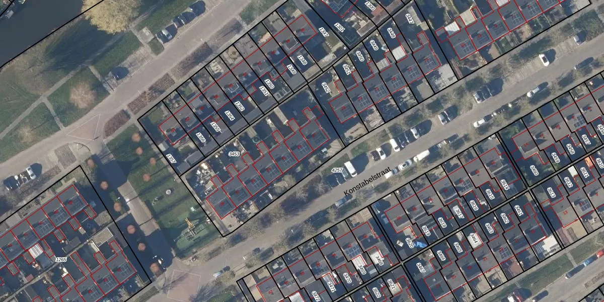 Het perceel waarop Konstabelstraat 29 staat heeft een oppervlakte van 1272 m². Dit is een zeer groot perceel. De perceeloppervlakte wordt geregistreerd door het Kadaster. Gedetailleerde informatie over de maten van dit perceel kunt u vinden in het rapport Kadastrale kaart met maatvoering van Konstabelstraat 29.