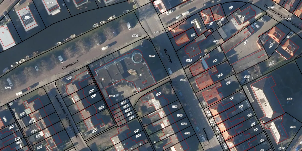 Het perceel waarop Meerlaan 47 staat heeft een oppervlakte van 1412 m². Dit is een zeer groot perceel. De perceeloppervlakte wordt geregistreerd door het Kadaster. Gedetailleerde informatie over de maten van dit perceel kunt u vinden in het rapport Kadastrale kaart met maatvoering van Meerlaan 47.
