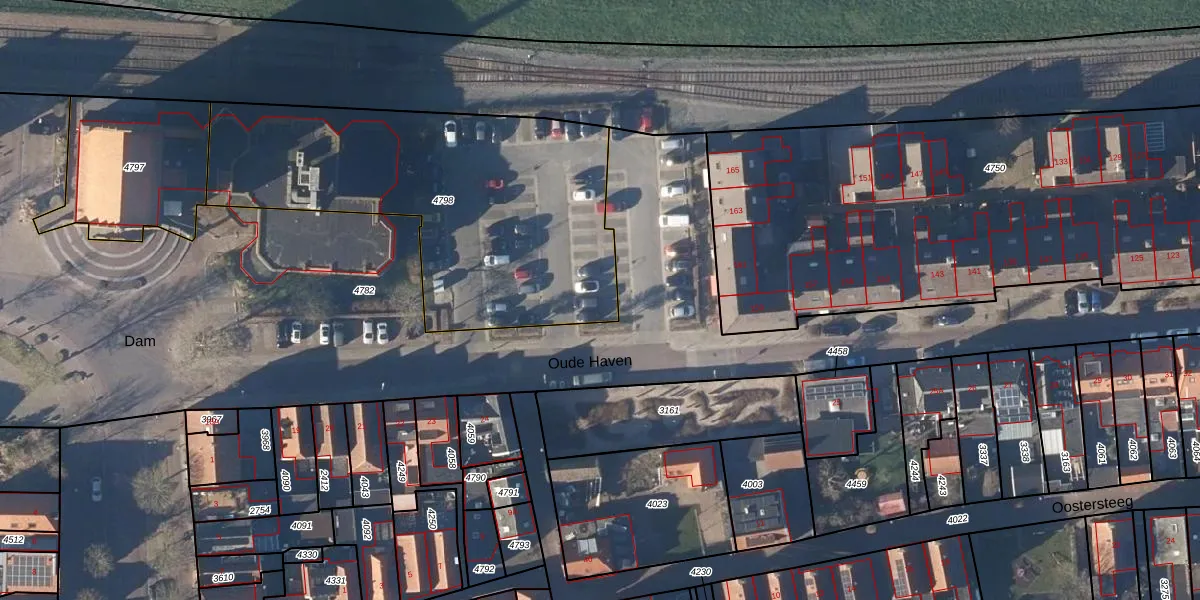 Het perceel waarop Oude Haven 177 staat heeft een oppervlakte van 1712 m². Dit is een zeer groot perceel. De perceeloppervlakte wordt geregistreerd door het Kadaster. Gedetailleerde informatie over de maten van dit perceel kunt u vinden in het rapport Kadastrale kaart met maatvoering van Oude Haven 177.