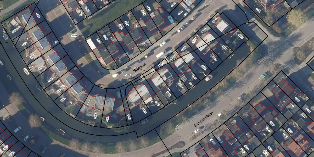 Het perceel waarop Spanker 13 staat heeft een oppervlakte van 205 m². Dit is een middelgroot perceel. De perceeloppervlakte wordt geregistreerd door het Kadaster. Gedetailleerde informatie over de maten van dit perceel kunt u vinden in het rapport Kadastrale kaart met maatvoering van Spanker 13.
