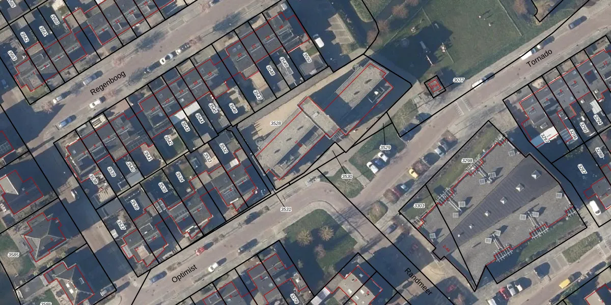 Het perceel waarop Tornado 5 staat heeft een oppervlakte van 1220 m². Dit is een zeer groot perceel. De perceeloppervlakte wordt geregistreerd door het Kadaster. Gedetailleerde informatie over de maten van dit perceel kunt u vinden in het rapport Kadastrale kaart met maatvoering van Tornado 5.