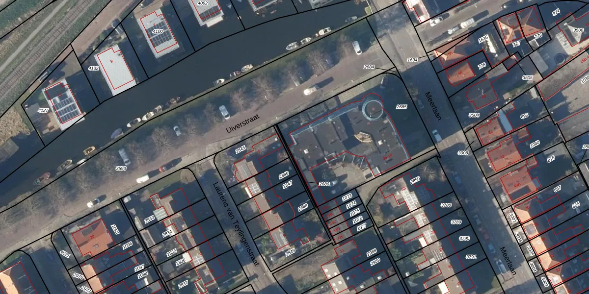 Het perceel waarop Uiverstraat 18 staat heeft een oppervlakte van 1412 m². Dit is een zeer groot perceel. De perceeloppervlakte wordt geregistreerd door het Kadaster. Gedetailleerde informatie over de maten van dit perceel kunt u vinden in het rapport Kadastrale kaart met maatvoering van Uiverstraat 18.