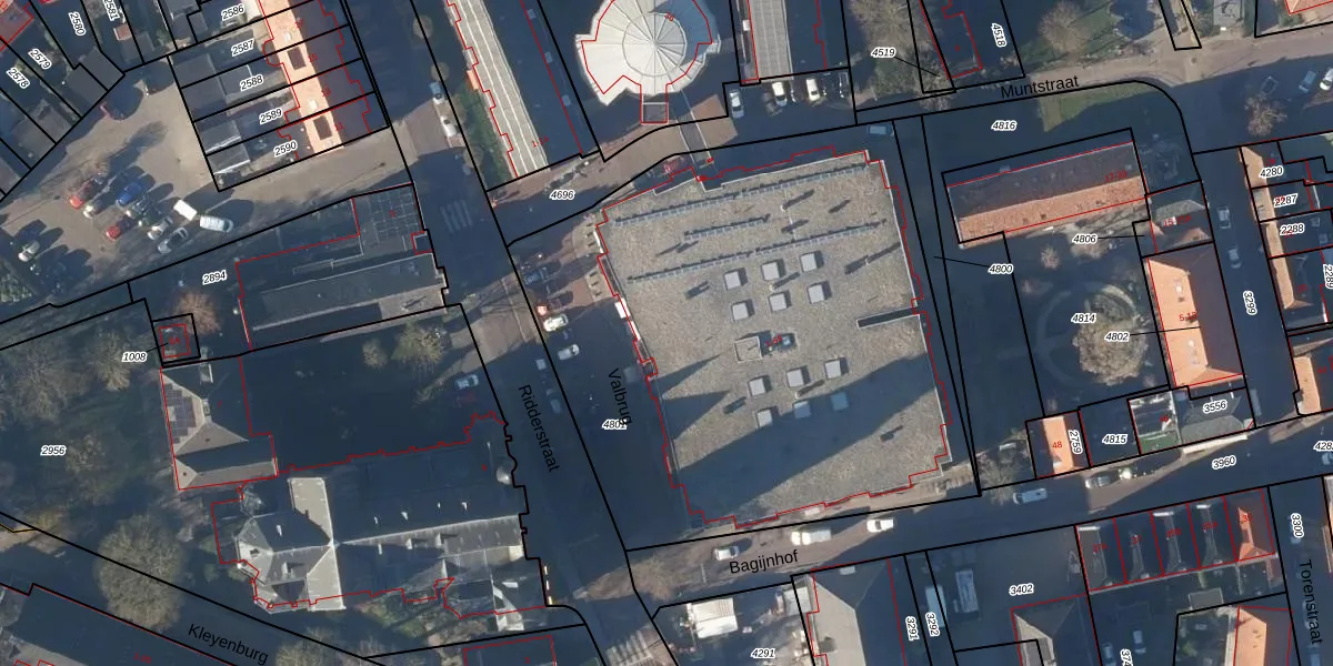 Het perceel waarop Valbrug 24 staat heeft een oppervlakte van 3183 m². Dit is een zeer groot perceel. De perceeloppervlakte wordt geregistreerd door het Kadaster. Gedetailleerde informatie over de maten van dit perceel kunt u vinden in het rapport Kadastrale kaart met maatvoering van Valbrug 24.