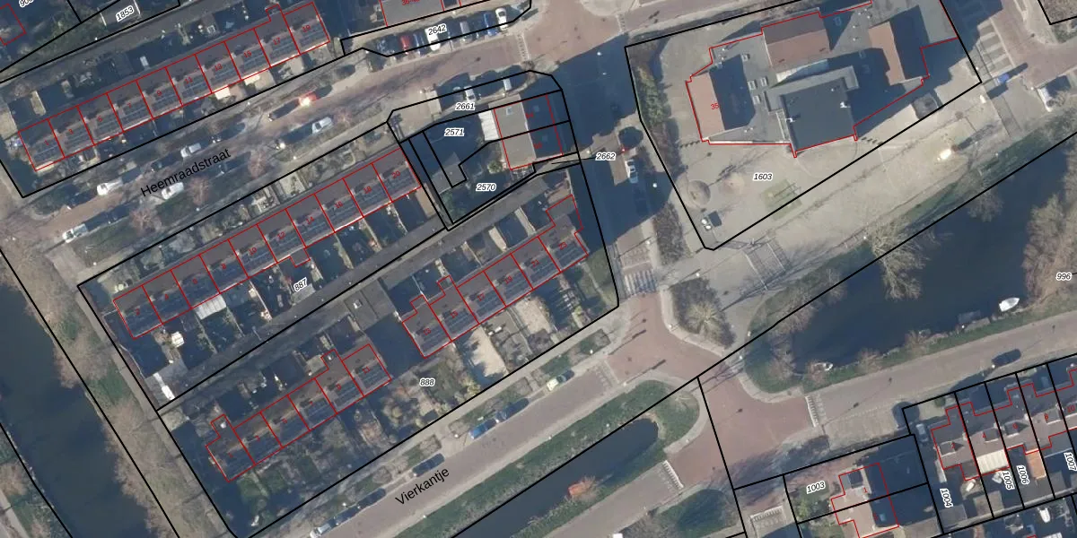Het perceel waarop Vierkantje 21 staat heeft een oppervlakte van 2555 m². Dit is een zeer groot perceel. De perceeloppervlakte wordt geregistreerd door het Kadaster. Gedetailleerde informatie over de maten van dit perceel kunt u vinden in het rapport Kadastrale kaart met maatvoering van Vierkantje 21.