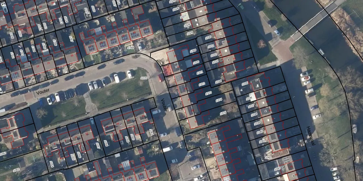 Het perceel waarop Vouter 45 staat heeft een oppervlakte van 142 m². Dit is een middelgroot perceel. De perceeloppervlakte wordt geregistreerd door het Kadaster. Gedetailleerde informatie over de maten van dit perceel kunt u vinden in het rapport Kadastrale kaart met maatvoering van Vouter 45.