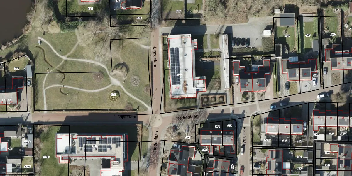 Het perceel waarop Berkenlaan 1 staat heeft een oppervlakte van 1563 m². Dit is een zeer groot perceel. De perceeloppervlakte wordt geregistreerd door het Kadaster. Gedetailleerde informatie over de maten van dit perceel kunt u vinden in het rapport Kadastrale kaart met maatvoering van Berkenlaan 1.
