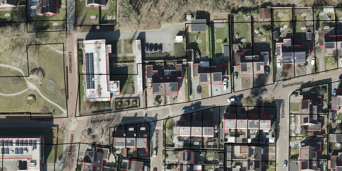 Het perceel waarop Berkenlaan 15-B staat heeft een oppervlakte van 1563 m². Dit is een zeer groot perceel. De perceeloppervlakte wordt geregistreerd door het Kadaster. Gedetailleerde informatie over de maten van dit perceel kunt u vinden in het rapport Kadastrale kaart met maatvoering van Berkenlaan 15-B.