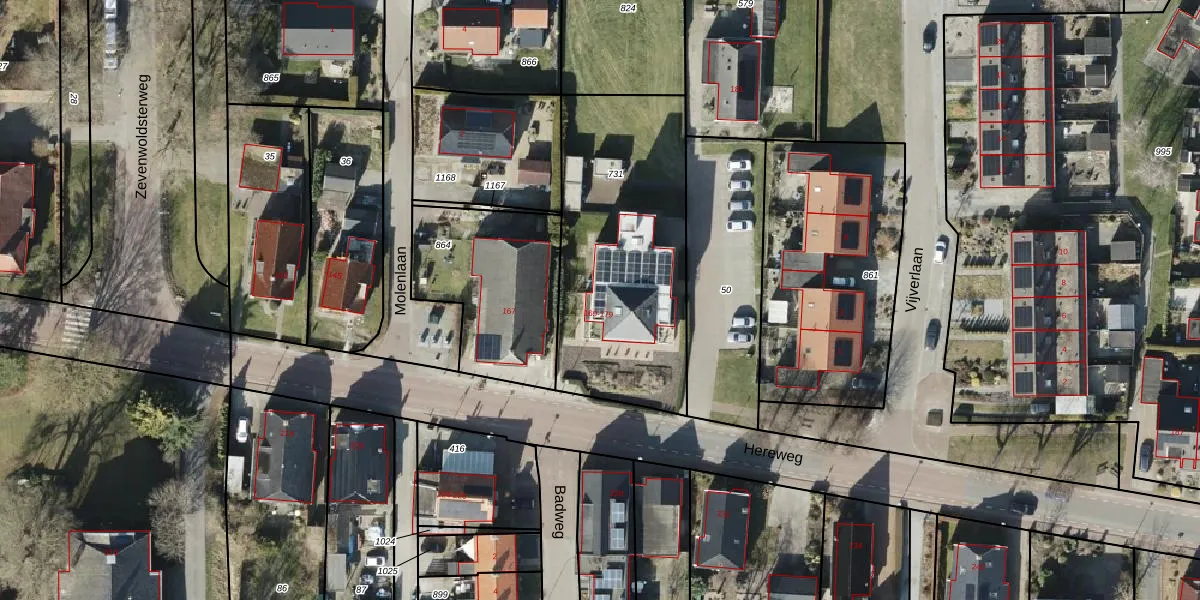Het perceel waarop Hereweg 173 staat heeft een oppervlakte van 1087 m². Dit is een zeer groot perceel. De perceeloppervlakte wordt geregistreerd door het Kadaster. Gedetailleerde informatie over de maten van dit perceel kunt u vinden in het rapport Kadastrale kaart met maatvoering van Hereweg 173.