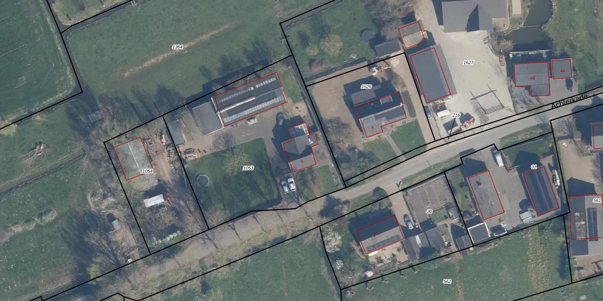 Het perceel waarop Achterkade 6 staat heeft een oppervlakte van 2020 m². Dit is een zeer groot perceel. De perceeloppervlakte wordt geregistreerd door het Kadaster. Gedetailleerde informatie over de maten van dit perceel kunt u vinden in het rapport Kadastrale kaart met maatvoering van Achterkade 6.