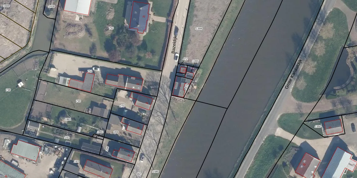 Het perceel waarop Bazeldijk 27 staat heeft een oppervlakte van 94 m². Dit is een klein perceel. De perceeloppervlakte wordt geregistreerd door het Kadaster. Gedetailleerde informatie over de maten van dit perceel kunt u vinden in het rapport Kadastrale kaart met maatvoering van Bazeldijk 27.