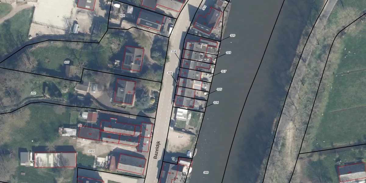 Het perceel waarop Bazeldijk 45 staat heeft een oppervlakte van 91 m². Dit is een klein perceel. De perceeloppervlakte wordt geregistreerd door het Kadaster. Gedetailleerde informatie over de maten van dit perceel kunt u vinden in het rapport Kadastrale kaart met maatvoering van Bazeldijk 45.