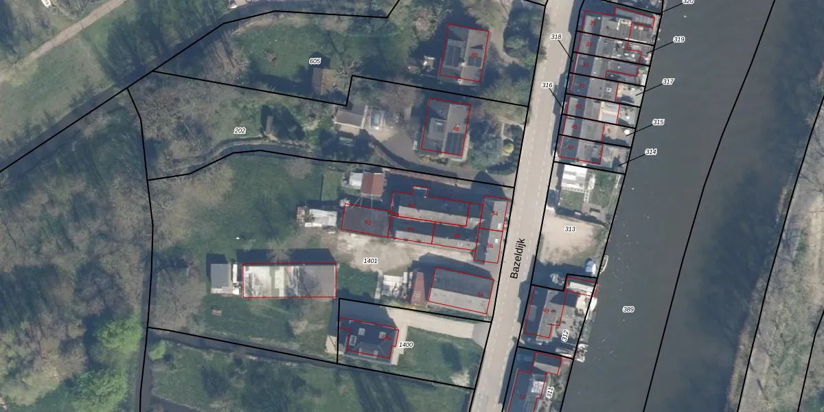 Het perceel waarop Bazeldijk 50 staat heeft een oppervlakte van 3373 m². Dit is een zeer groot perceel. De perceeloppervlakte wordt geregistreerd door het Kadaster. Gedetailleerde informatie over de maten van dit perceel kunt u vinden in het rapport Kadastrale kaart met maatvoering van Bazeldijk 50.