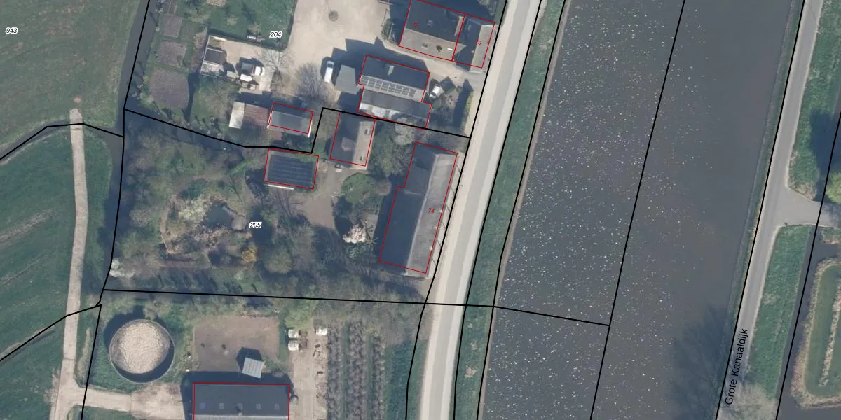 Het perceel waarop Bazeldijk 74 staat heeft een oppervlakte van 3230 m². Dit is een zeer groot perceel. De perceeloppervlakte wordt geregistreerd door het Kadaster. Gedetailleerde informatie over de maten van dit perceel kunt u vinden in het rapport Kadastrale kaart met maatvoering van Bazeldijk 74.