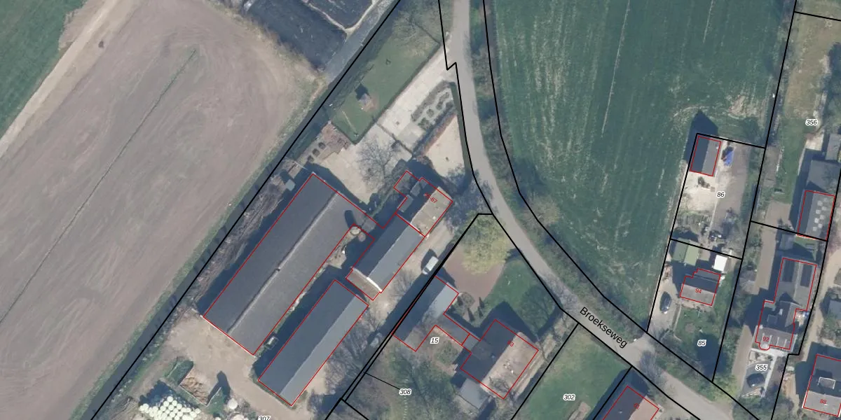 Het perceel waarop Broekseweg 65 staat heeft een oppervlakte van 5,4 ha. Dit is een zeer groot perceel. De perceeloppervlakte wordt geregistreerd door het Kadaster. Gedetailleerde informatie over de maten van dit perceel kunt u vinden in het rapport Kadastrale kaart met maatvoering van Broekseweg 65.