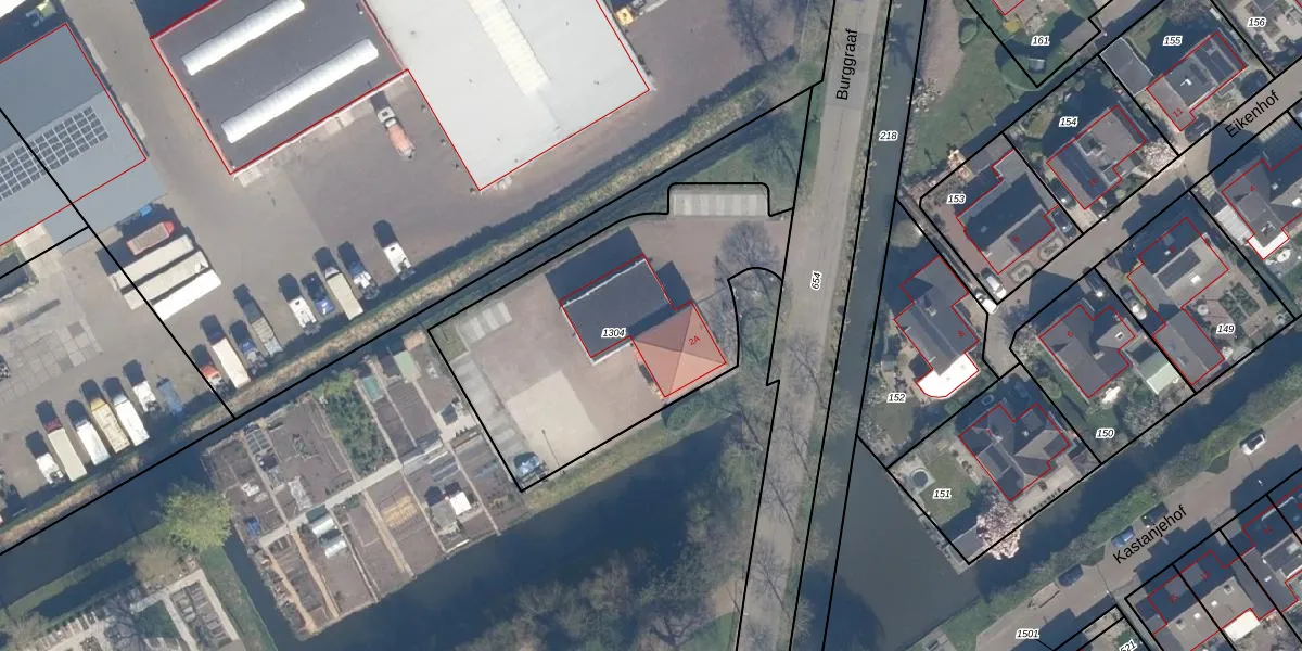 Het perceel waarop Burggraaf 2-A staat heeft een oppervlakte van 1385 m². Dit is een zeer groot perceel. De perceeloppervlakte wordt geregistreerd door het Kadaster. Gedetailleerde informatie over de maten van dit perceel kunt u vinden in het rapport Kadastrale kaart met maatvoering van Burggraaf 2-A.