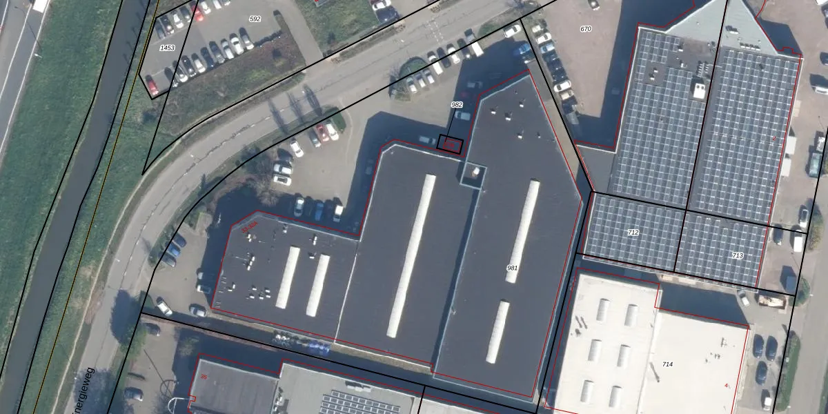 Het perceel waarop Energieweg 33-A staat heeft een oppervlakte van 6150 m². Dit is een zeer groot perceel. De perceeloppervlakte wordt geregistreerd door het Kadaster. Gedetailleerde informatie over de maten van dit perceel kunt u vinden in het rapport Kadastrale kaart met maatvoering van Energieweg 33-A.