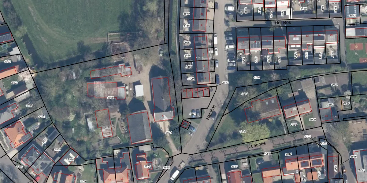 Het perceel waarop Het Bos 1-A staat heeft een oppervlakte van 80 m². Dit is een klein perceel. De perceeloppervlakte wordt geregistreerd door het Kadaster. Gedetailleerde informatie over de maten van dit perceel kunt u vinden in het rapport Kadastrale kaart met maatvoering van Het Bos 1-A.