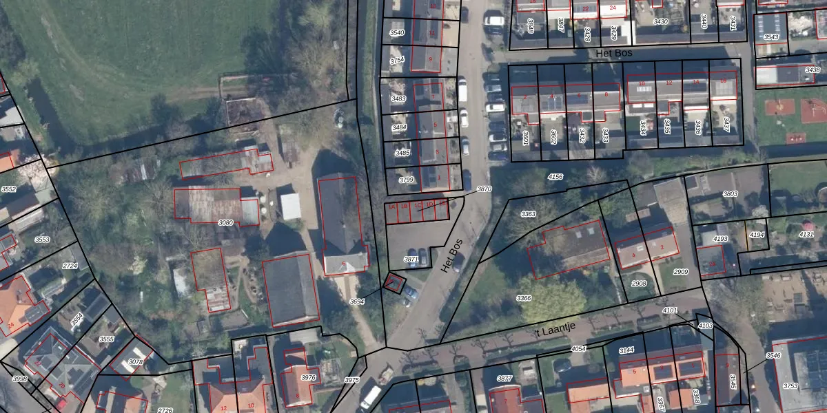 Het perceel waarop Het Bos 1-C staat heeft een oppervlakte van 80 m². Dit is een klein perceel. De perceeloppervlakte wordt geregistreerd door het Kadaster. Gedetailleerde informatie over de maten van dit perceel kunt u vinden in het rapport Kadastrale kaart met maatvoering van Het Bos 1-C.