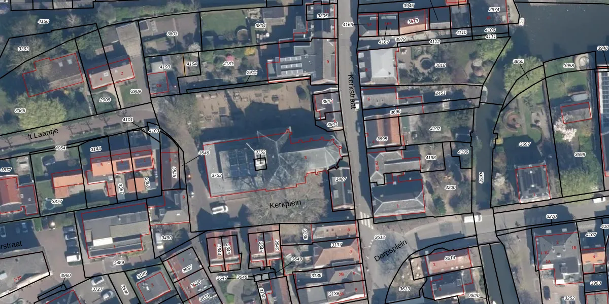 Het perceel waarop Kerkstraat 3 staat heeft een oppervlakte van 2336 m². Dit is een zeer groot perceel. De perceeloppervlakte wordt geregistreerd door het Kadaster. Gedetailleerde informatie over de maten van dit perceel kunt u vinden in het rapport Kadastrale kaart met maatvoering van Kerkstraat 3.