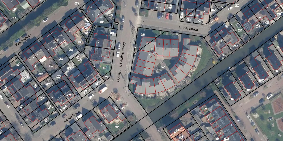 Het perceel waarop Lindenstraat 55 staat heeft een oppervlakte van 2288 m². Dit is een zeer groot perceel. De perceeloppervlakte wordt geregistreerd door het Kadaster. Gedetailleerde informatie over de maten van dit perceel kunt u vinden in het rapport Kadastrale kaart met maatvoering van Lindenstraat 55.