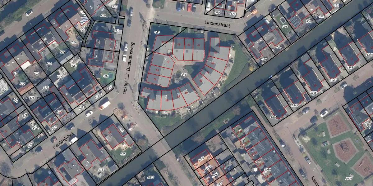 Het perceel waarop Lindenstraat 65 staat heeft een oppervlakte van 2288 m². Dit is een zeer groot perceel. De perceeloppervlakte wordt geregistreerd door het Kadaster. Gedetailleerde informatie over de maten van dit perceel kunt u vinden in het rapport Kadastrale kaart met maatvoering van Lindenstraat 65.
