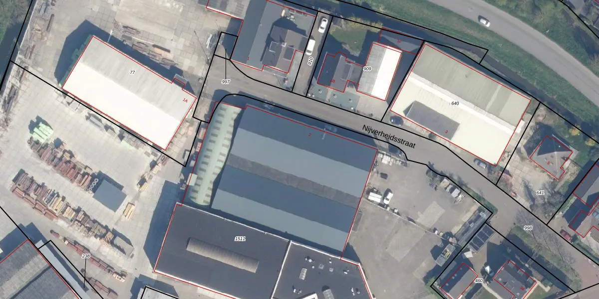 Het perceel waarop Nijverheidsstraat 2 staat heeft een oppervlakte van 1,2 ha. Dit is een zeer groot perceel. De perceeloppervlakte wordt geregistreerd door het Kadaster. Gedetailleerde informatie over de maten van dit perceel kunt u vinden in het rapport Kadastrale kaart met maatvoering van Nijverheidsstraat 2.
