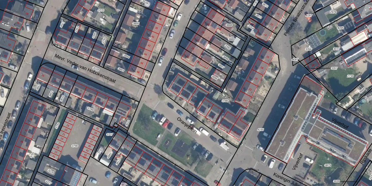 Het perceel waarop Oranjeplein 3 staat heeft een oppervlakte van 1707 m². Dit is een zeer groot perceel. De perceeloppervlakte wordt geregistreerd door het Kadaster. Gedetailleerde informatie over de maten van dit perceel kunt u vinden in het rapport Kadastrale kaart met maatvoering van Oranjeplein 3.