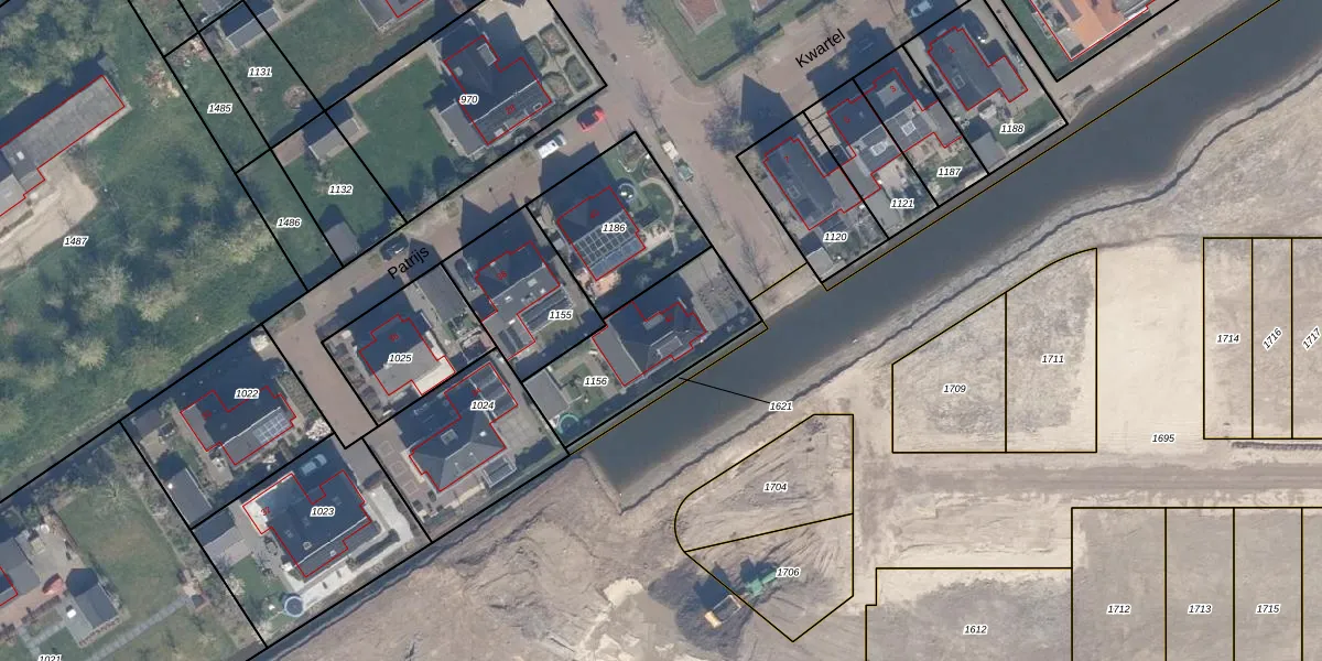 Het perceel waarop Patrijs 42 staat heeft een oppervlakte van 455 m². Dit is een groot perceel. De perceeloppervlakte wordt geregistreerd door het Kadaster. Gedetailleerde informatie over de maten van dit perceel kunt u vinden in het rapport Kadastrale kaart met maatvoering van Patrijs 42.