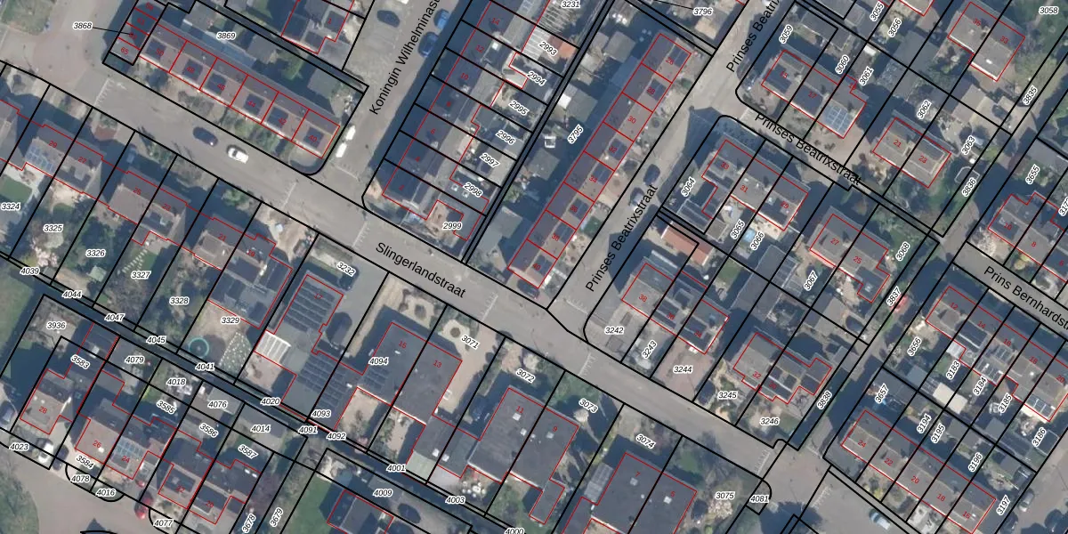 Het perceel waarop Prinses Beatrixstraat 40 staat heeft een oppervlakte van 1110 m². Dit is een zeer groot perceel. De perceeloppervlakte wordt geregistreerd door het Kadaster. Gedetailleerde informatie over de maten van dit perceel kunt u vinden in het rapport Kadastrale kaart met maatvoering van Prinses Beatrixstraat 40.