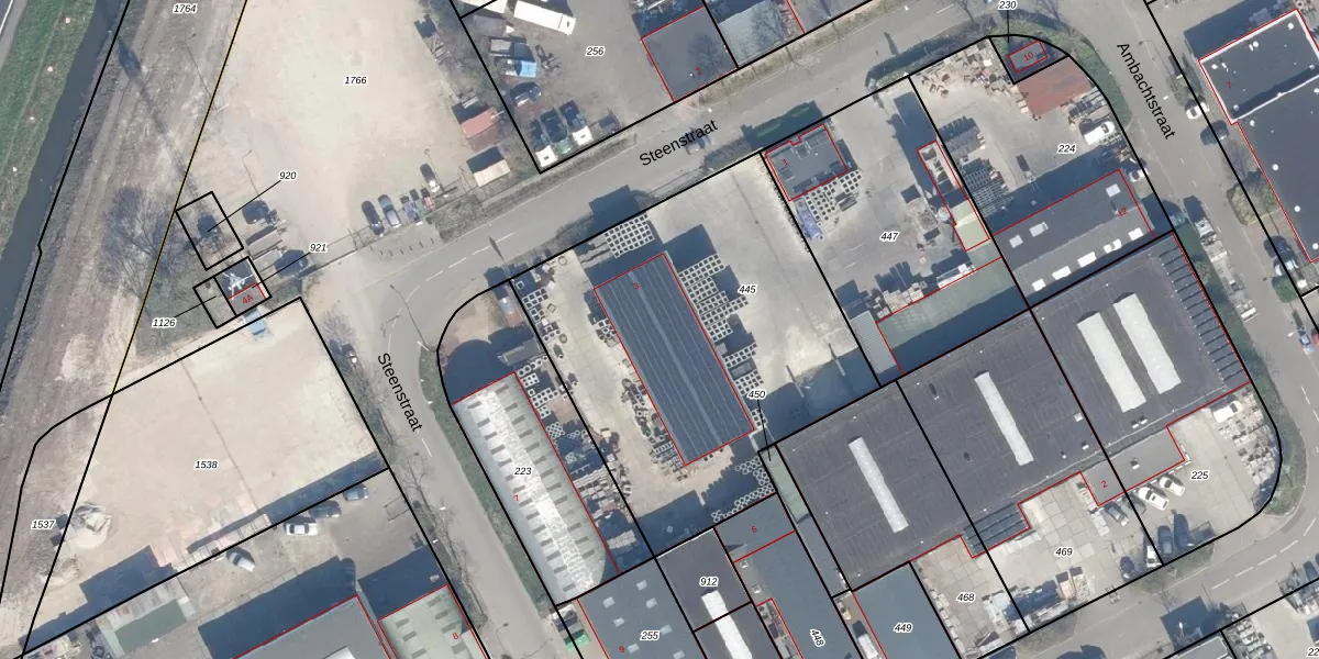 Gebruik de zoekbalk of klik op een perceel voor informatie over de adressen binnen dit perceel.