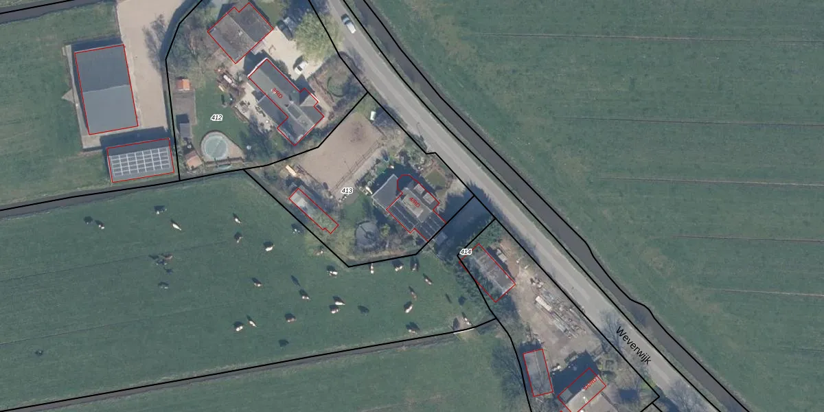 Weverwijk 4-RD is gelegen op kadastraal perceel ZDR00D413. Deze kadastrale aanduiding is uniek en wordt gebruikt door het Kadaster om eigendomsrechten en andere zakelijke rechten vast te leggen. Het perceel maakt onderdeel uit van de kadastrale gemeente Zederik.