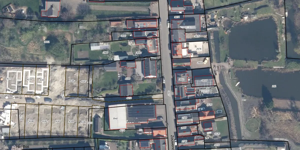 Gebruik de zoekbalk of klik op een perceel voor informatie over de adressen binnen dit perceel.