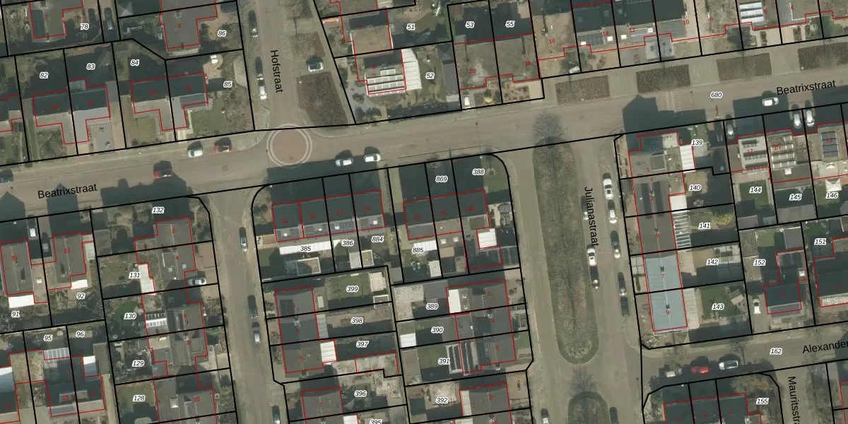 Het perceel waarop Beatrixstraat 23 staat heeft een oppervlakte van 253 m². Dit is een middelgroot perceel. De perceeloppervlakte wordt geregistreerd door het Kadaster. Gedetailleerde informatie over de maten van dit perceel kunt u vinden in het rapport Kadastrale kaart met maatvoering van Beatrixstraat 23.