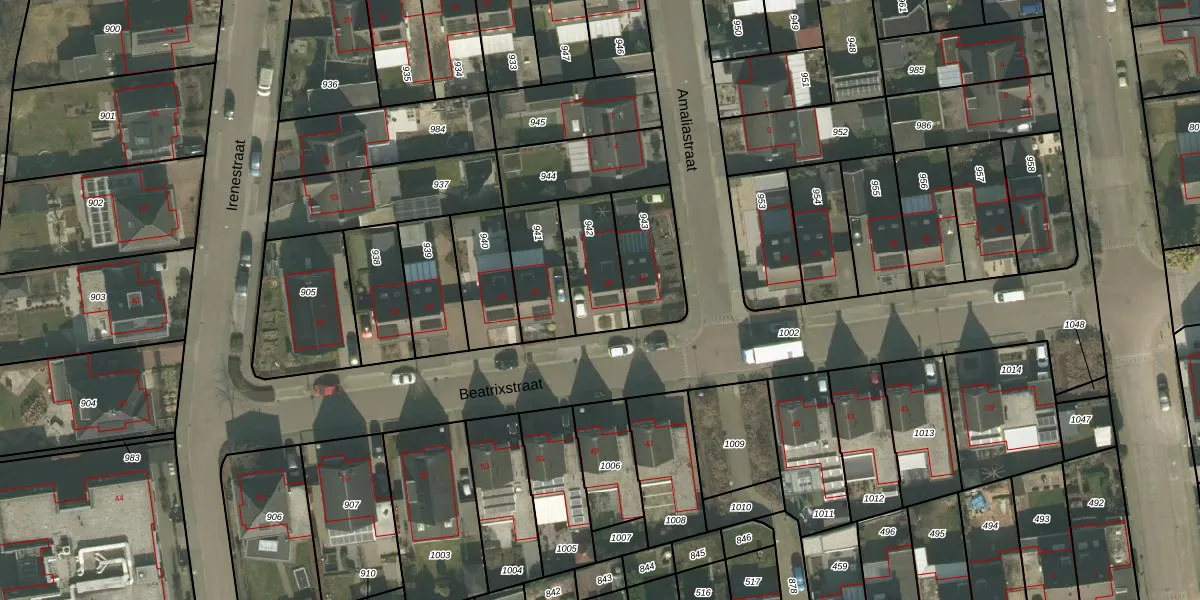 Het perceel waarop Beatrixstraat 46 staat heeft een oppervlakte van 205 m². Dit is een middelgroot perceel. De perceeloppervlakte wordt geregistreerd door het Kadaster. Gedetailleerde informatie over de maten van dit perceel kunt u vinden in het rapport Kadastrale kaart met maatvoering van Beatrixstraat 46.