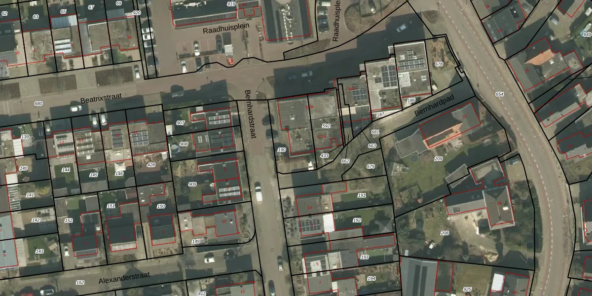 Bernhardstraat 1 is gelegen op kadastraal perceel MLO02G190. Deze kadastrale aanduiding is uniek en wordt gebruikt door het Kadaster om eigendomsrechten en andere zakelijke rechten vast te leggen. Het perceel maakt onderdeel uit van de kadastrale gemeente Meerlo.