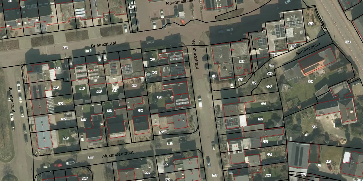 Het perceel waarop Bernhardstraat 6 staat heeft een oppervlakte van 433 m². Dit is een groot perceel. De perceeloppervlakte wordt geregistreerd door het Kadaster. Gedetailleerde informatie over de maten van dit perceel kunt u vinden in het rapport Kadastrale kaart met maatvoering van Bernhardstraat 6.