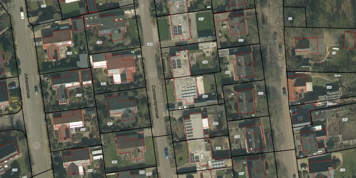 Constantijnstraat 7 is gelegen op kadastraal perceel MLO02G599. Deze kadastrale aanduiding is uniek en wordt gebruikt door het Kadaster om eigendomsrechten en andere zakelijke rechten vast te leggen. Het perceel maakt onderdeel uit van de kadastrale gemeente Meerlo.