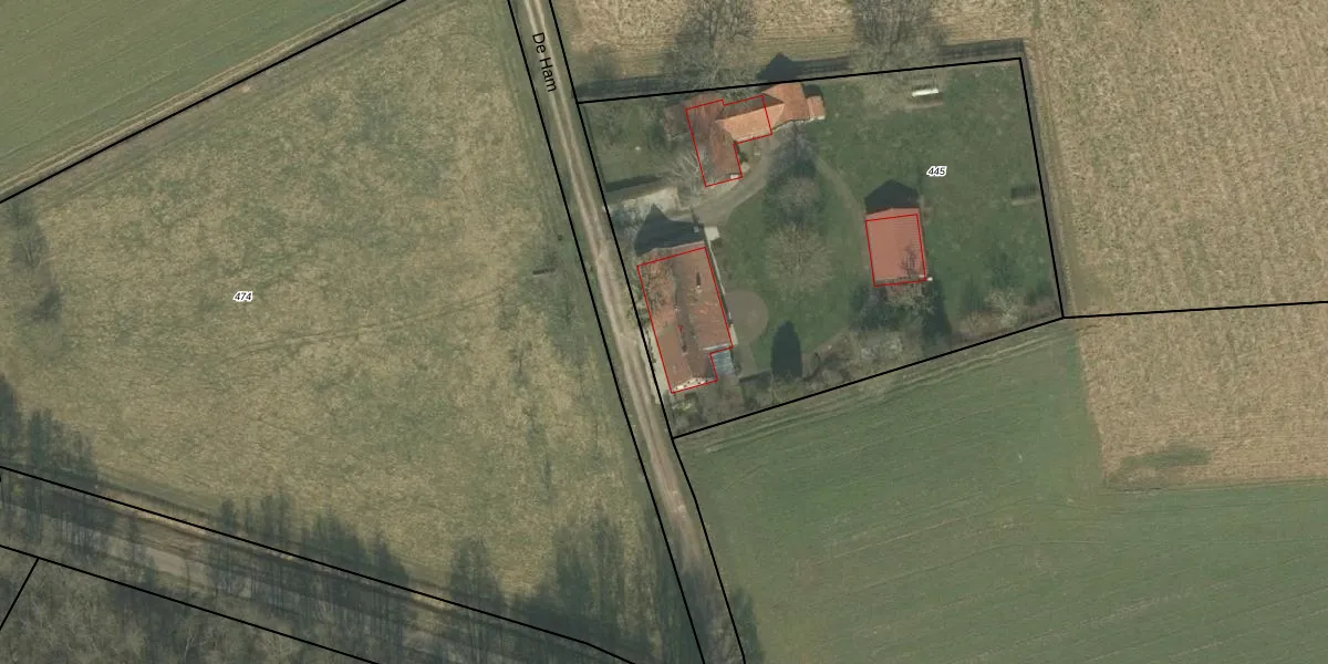 Het perceel waarop De Ham 7 staat heeft een oppervlakte van 2946 m². Dit is een zeer groot perceel. De perceeloppervlakte wordt geregistreerd door het Kadaster. Gedetailleerde informatie over de maten van dit perceel kunt u vinden in het rapport Kadastrale kaart met maatvoering van De Ham 7.