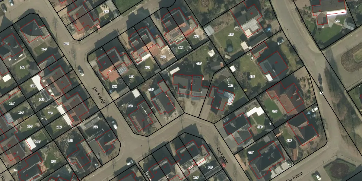 Het perceel waarop De Kievit 8-a staat heeft een oppervlakte van 800 m². Dit is een groot perceel. De perceeloppervlakte wordt geregistreerd door het Kadaster. Gedetailleerde informatie over de maten van dit perceel kunt u vinden in het rapport Kadastrale kaart met maatvoering van De Kievit 8-a.