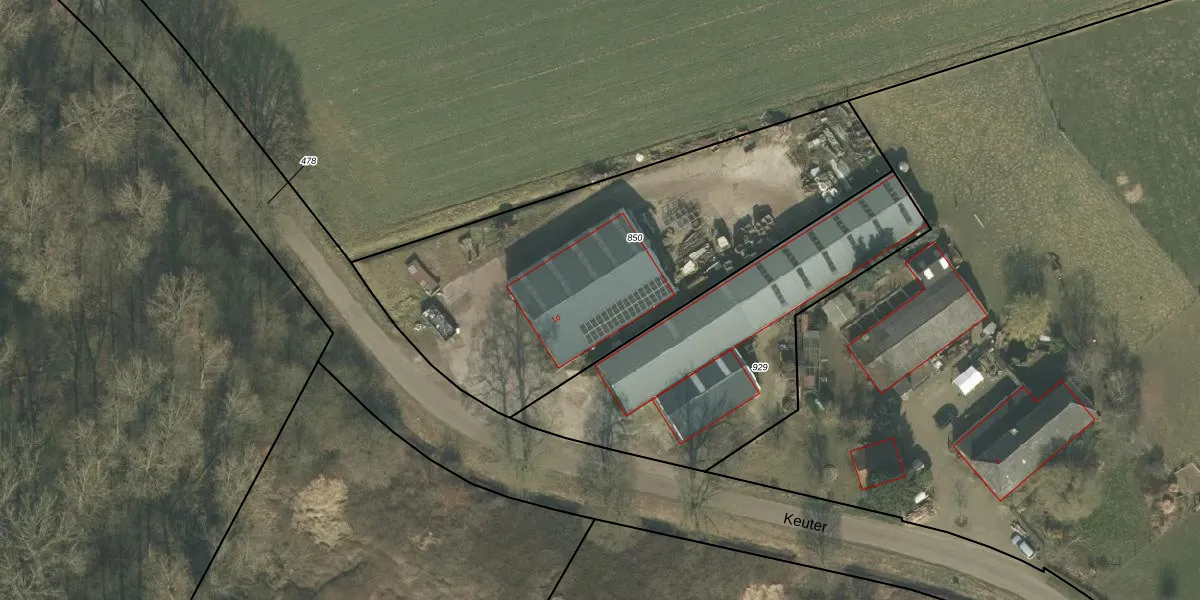 Het perceel waarop Keuter 1-d staat heeft een oppervlakte van 2057 m². Dit is een zeer groot perceel. De perceeloppervlakte wordt geregistreerd door het Kadaster. Gedetailleerde informatie over de maten van dit perceel kunt u vinden in het rapport Kadastrale kaart met maatvoering van Keuter 1-d.