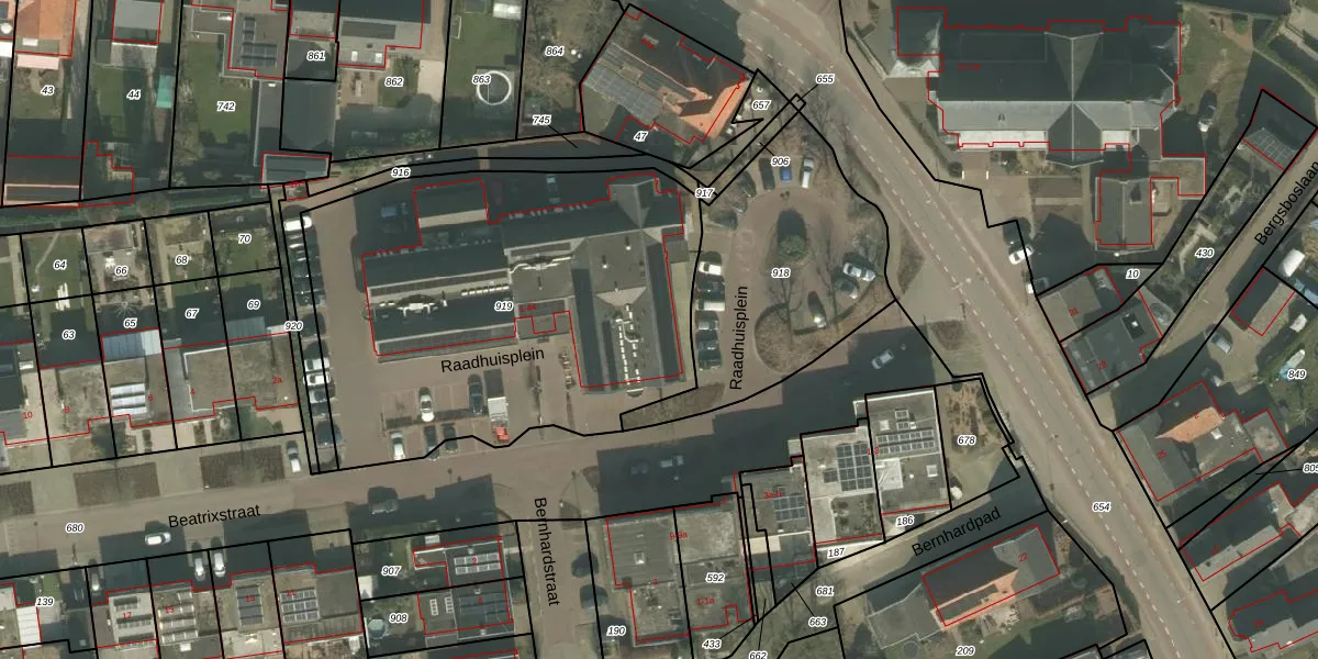 Raadhuisplein 16 is gelegen op kadastraal perceel MLO02G919. Deze kadastrale aanduiding is uniek en wordt gebruikt door het Kadaster om eigendomsrechten en andere zakelijke rechten vast te leggen. Het perceel maakt onderdeel uit van de kadastrale gemeente Meerlo.